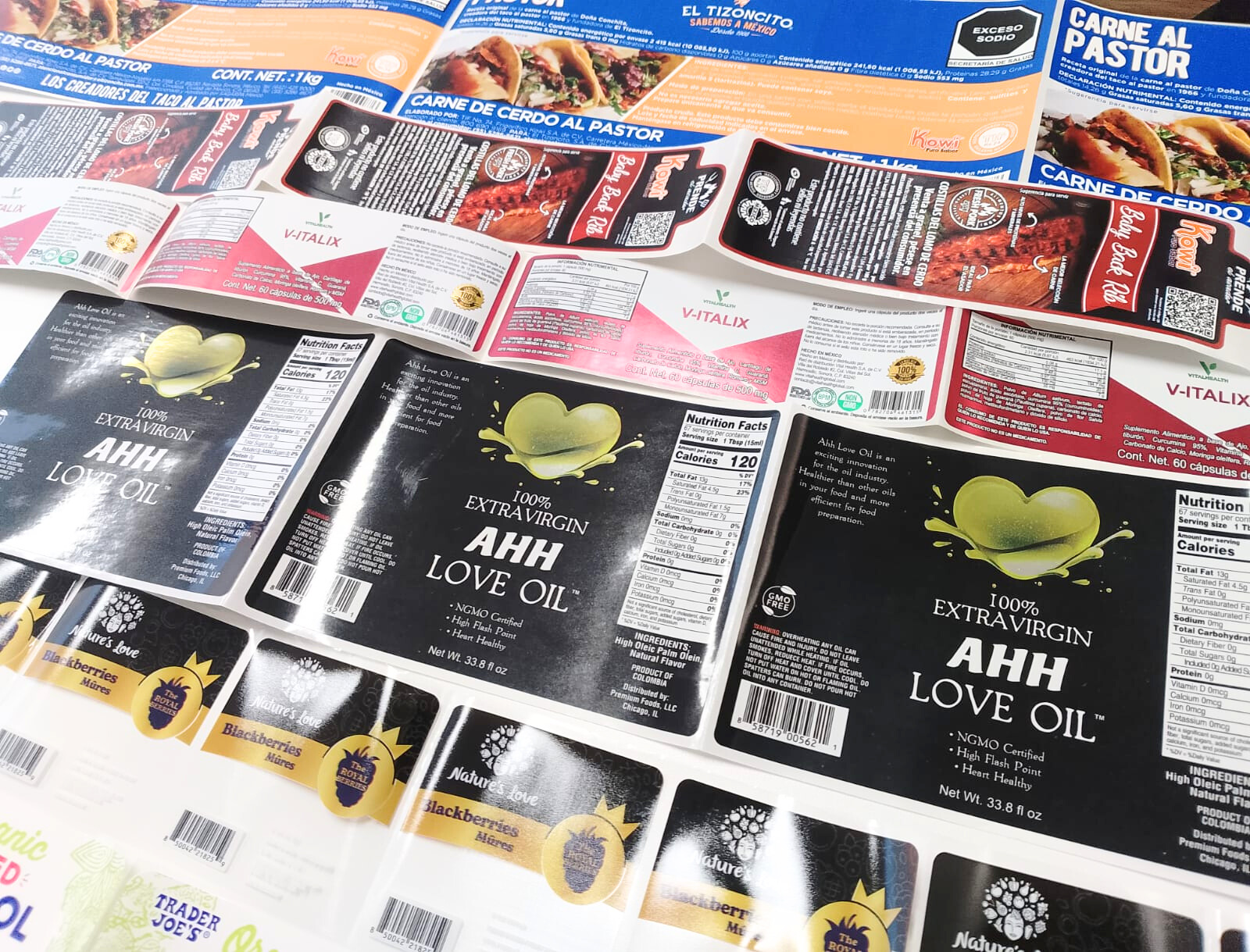 Available in white, clear, or metallic finishes, BOPP labels are compatible with flexographic, digital, and thermal transfer printing.